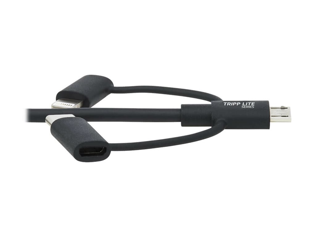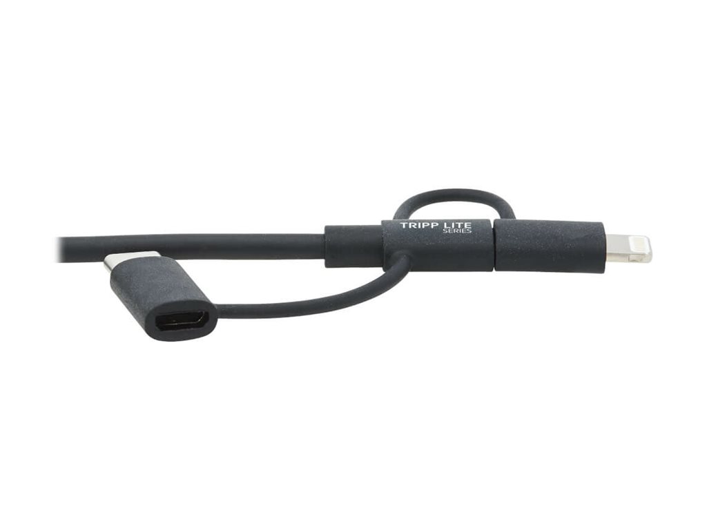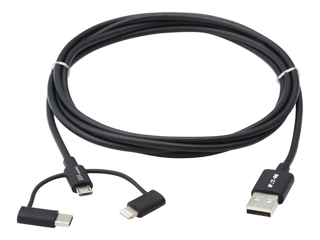 Eaton Tripp Lite Series Universal USB-A to Lightning, USB Micro-B and USB-C Sync/Charge Cable (M/3xM), MFi Certified, Black, 6 ft. (1.8 m) - Lightning-Kabel - USB männlich zu Micro-USB Typ B, Lightning, 24 pin USB-C männlich - 1.8 m - Schwarz