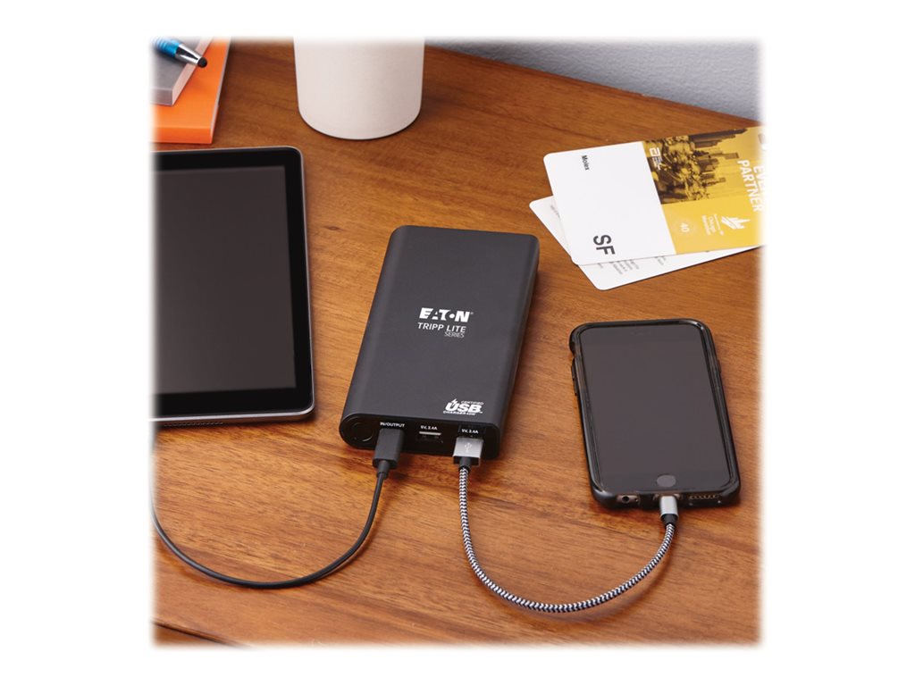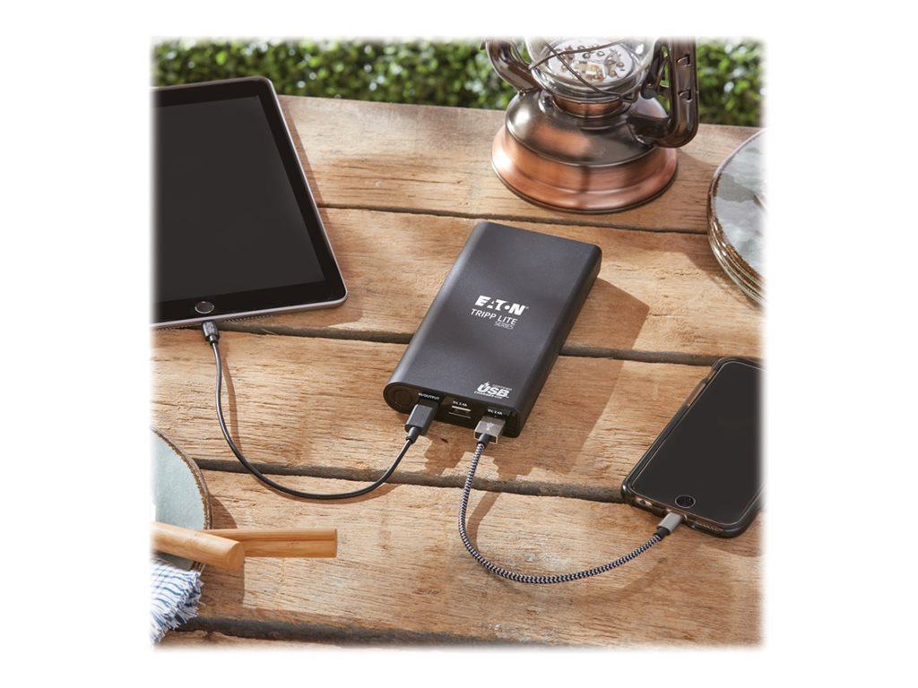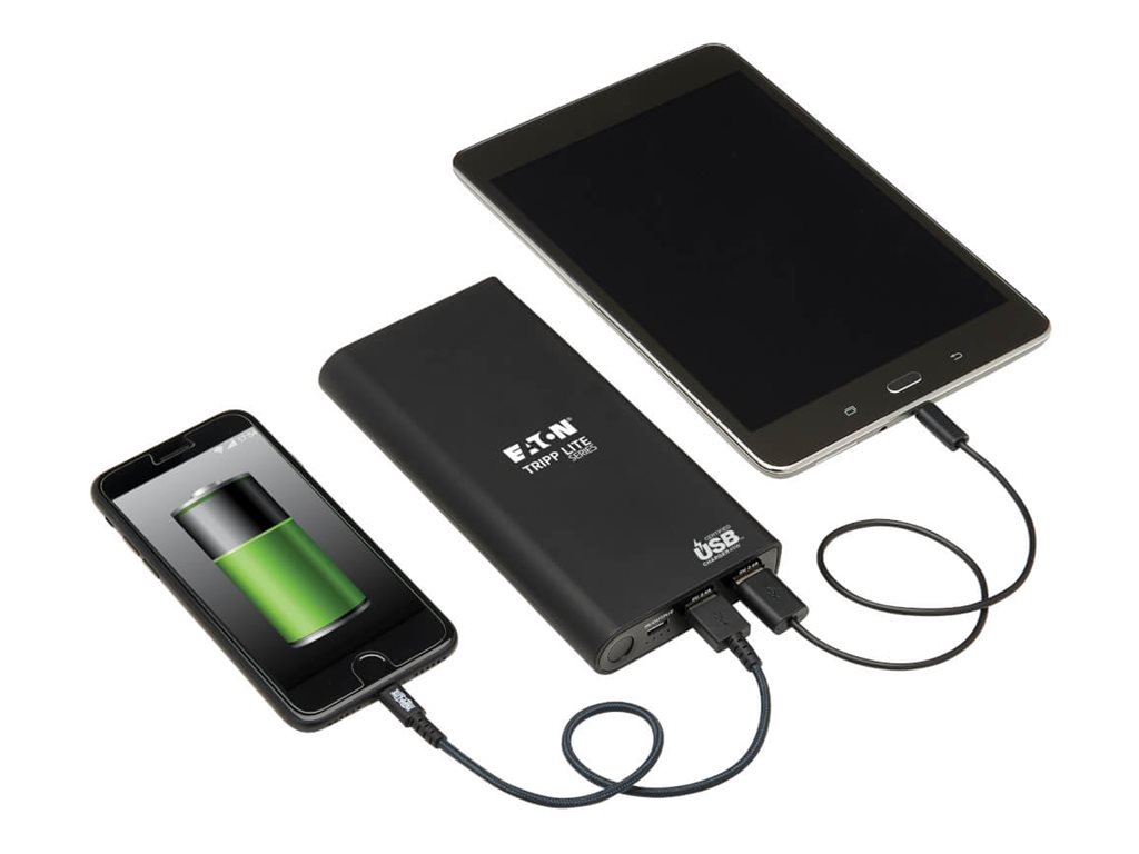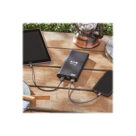 Eaton Tripp Lite Series Portable Charger - 2x USB-A, USB-C with PD Charging, 20,100mAh Power Bank, Lithium-Ion, USB-IF, Black - Powerbank - 20100 mAh - 57 Watt - 3 A - USB BC 1.2 - 3 Ausgabeanschlussstellen (USB Typ A, 24 pin USB-C) - auf Kabel: USB-C - S