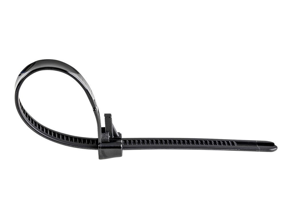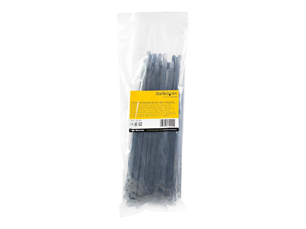 StarTech.com 10"(25cm) Reusable Cable Ties, 1/4"(7mm) wide, 2-1/2"(65mm) Bundle Dia. 50lb(22kg) Tensile Strength, Releasable Nylon Ties, Indoor/Outdoor, 94V-2/UL Listed, 100 Pack, Black - Nylon 66 Plastic - TAA (CBMZTRB10BK) - Kabelbinder - TAA-konform |