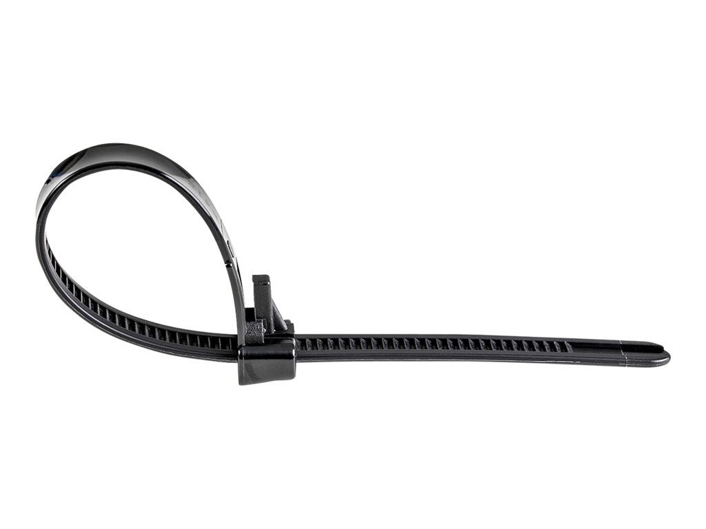 StarTech.com 12cm(5") Reusable Cable Ties, 7mm(1/4") wide, 30mm(1-1/8") Bundle Dia. 22kg(50lb) Tensile Strength, Releasable Nylon Ties, Indoor/Outdoor, 94V-2/UL Listed, 100 Pack, Black - Nylon 66 Plastic - TAA (CBMZTRB5BK) - Kabelbinder - TAA-konform |