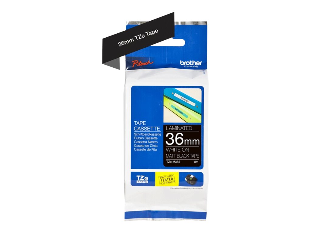 Brother TZe-M365 - Matt - Klebstoff - weiß auf mattschwarz - Rolle (3,6 cm x 8 m) 1 Kassette(n) laminiertes Band - für P-Touch PT-530, PT-9200DX, PT-9200PC, P-Touch Cube XP PT-910BT