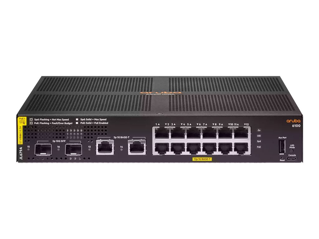 HPE Aruba 6100 12G Class4 PoE 2G/2SFP+ 139W Switch - Switch - 16 Anschlüsse - managed - an Rack montierbar |