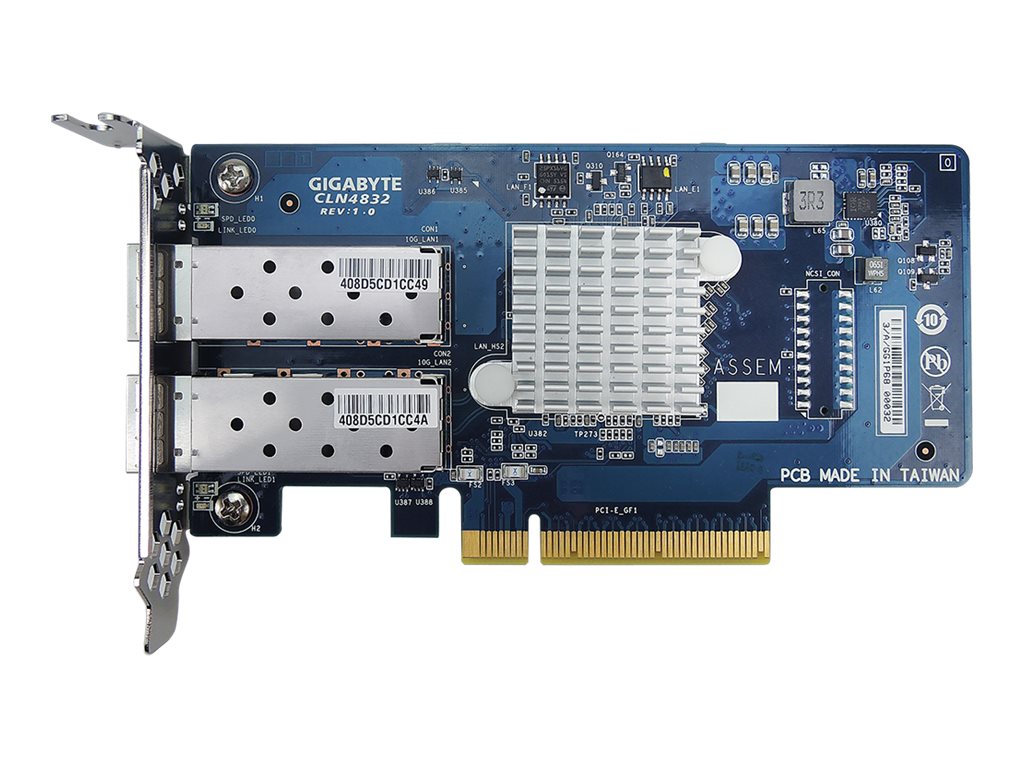 | Produktbeschreibung | Gigabyte CLN4832 (rev. 1.0) - Netzwerkadapter - PCIe 2.0 x8 - 10 Gigabit SFP+ x 2 |
