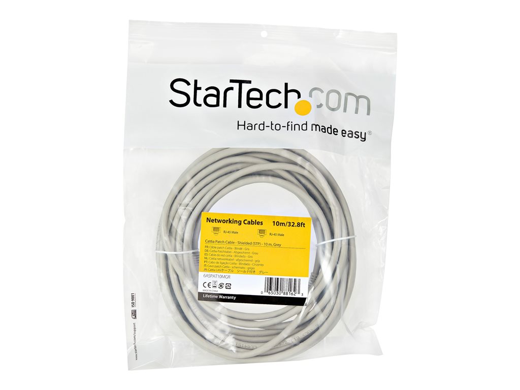 StarTech.com 10m CAT6A Ethernet Cable, 10 Gigabit Shielded Snagless RJ45 100W PoE Patch Cord, CAT 6A 10GbE STP Network Cable w/Strain Relief, Grey, Fluke Tested/UL Certified Wiring/TIA - Category 6A - 26AWG (6ASPAT10MGR) - Patch-Kabel - RJ-45 (M) zu RJ-45