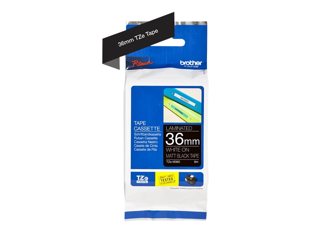 Brother TZe-M365 - Matt - Klebstoff - weißer Druck auf mattem Schwarz - Rolle (3,6 cm x 8 m) 1 Kassette(n) laminiertes Band - für P-Touch PT-530, PT-9200DX, PT-9200PC