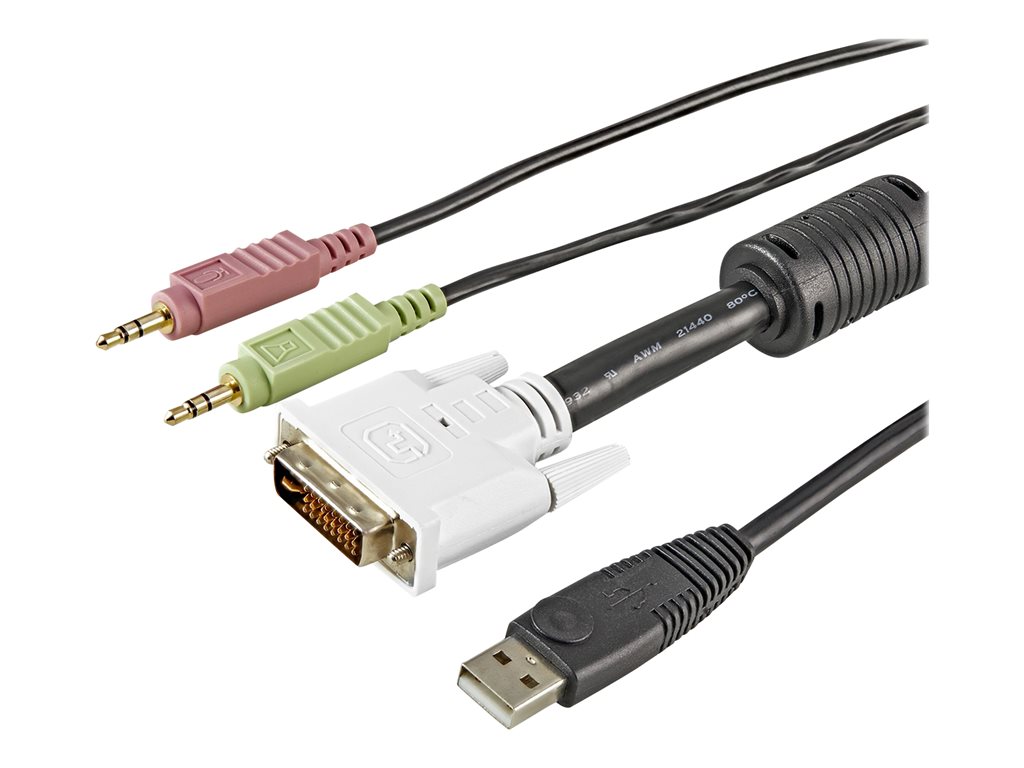 | Stecker (zweites Ende) | 4-polig USB Typ A - weiblich ¦ DVI kombiniert, 24+5-polig - männlich ¦ 2 x mini-phone stereo 3.5 mm - männlich ¦ 4-poliger USB Typ B |