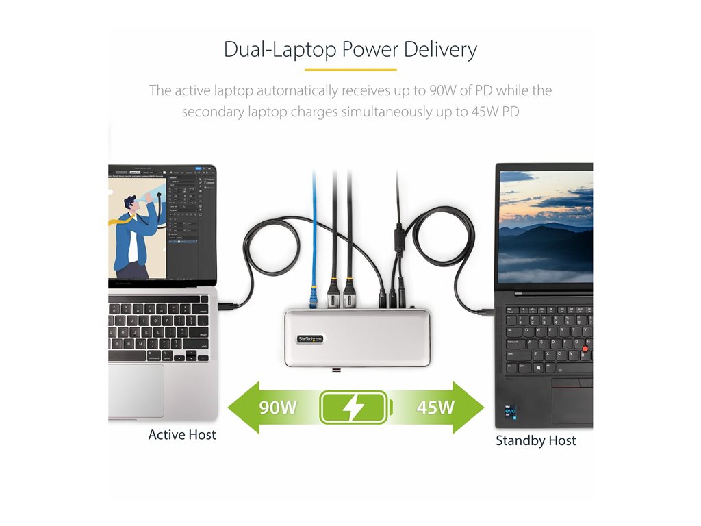 StarTech.com Dual-Laptop USB-C KVM Docking Station, Dual Monitor 4K 60Hz DisplayPort Dock, 5-Port USB Hub, GbE, 90W/45W Power Delivery to Two Laptops, Windows/Mac, 2-Host KVM Dock - Dockingstation - USB-C 3.2 Gen 2 - 2 x DP - 1GbE - TAA-konform