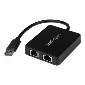 StarTech.com USB 3.0 SuperSpeed auf Dual Port Gigabit Ethernet LAN Adapter - 10/100/1000 NIC Netzwerkadapter mit USB-Port - Schwarz - Netzwerkadapter - USB 3.0 - 1GbE - 1000Base-T - 2 Anschlüsse - Schwarz