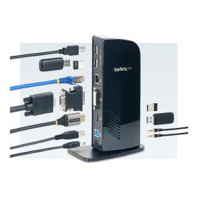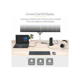 | Produktbeschreibung | StarTech.com USB 3.0 Dockingstation, kompatibel mit Windows / macOS, unterstützt Dual Displays, HDMI und DVI, inkl. DVI zu VGA Adapter - Dockingstation - USB - 1GbE |